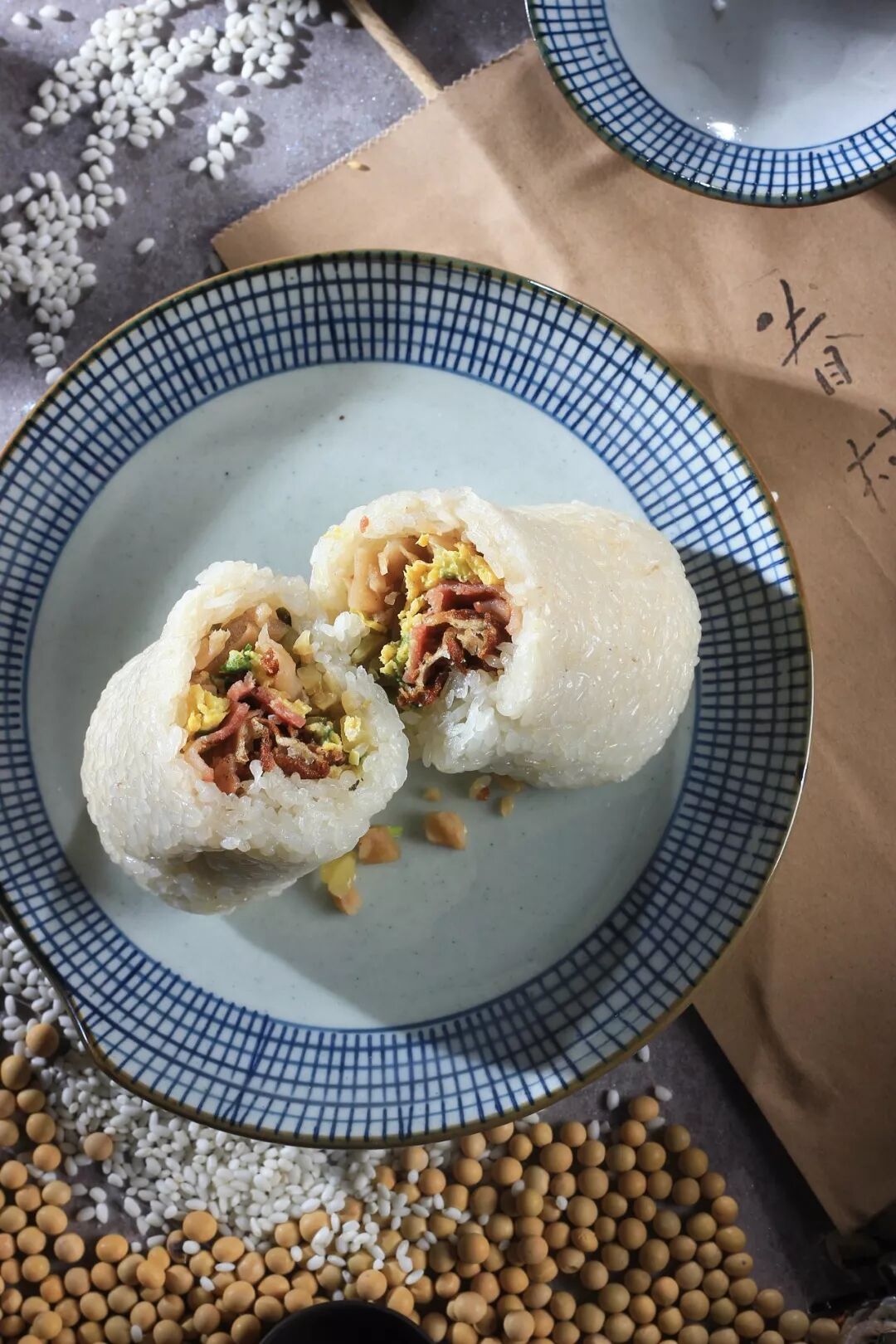 傳統(tǒng)粢飯團(tuán)以稻米和糯米做皮,中間夾裹火腿肉糜及油煎后的咸菜。